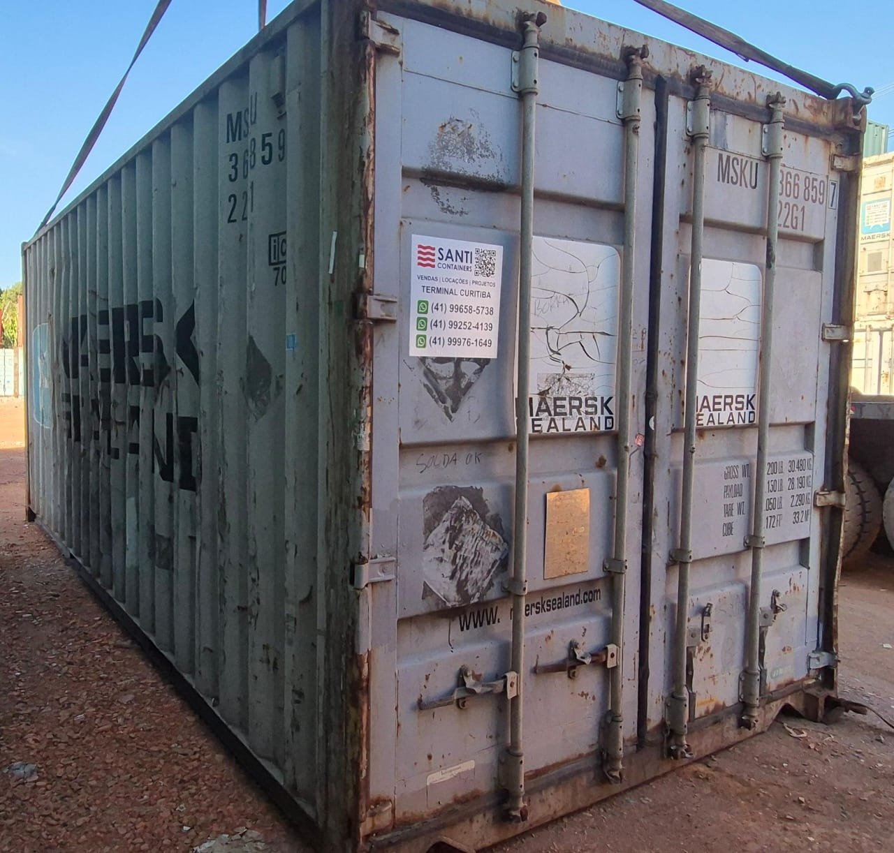 Comprimento: 6,06m Largura: 2,44m Altura: 2,60m Medidas Internas: Comprimento: 5,89m Largura: 2,33mm Altura: 2,35m Capacidade: Total: 33,2m³/ Pesos: 2.300 Kg